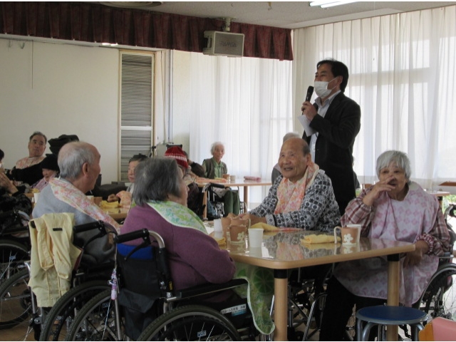 苑長より、お誕生日の方へメッセージが送られ皆さんでお祝いしました。