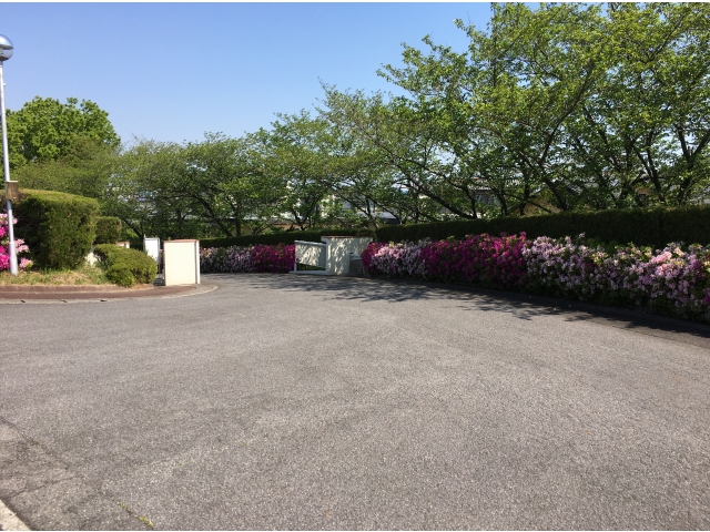 「花の苑」にふさわしく、今はつつじが見ごろで、門の周りから駐車場まで、華やかに彩られています。道路から門に続く坂道は、さながら「花の路(みち)」。私たちの目を楽しませてくれています。
