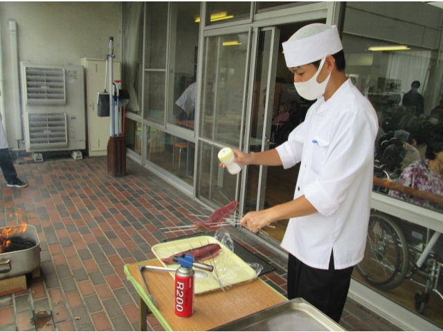 10/14(水)は月に一度の誕生会。今月はかつおを解体し、わら焼きにしてタタキでご提供!と、いうことで、大府苑自慢の調理師による解体ショーの始まり~