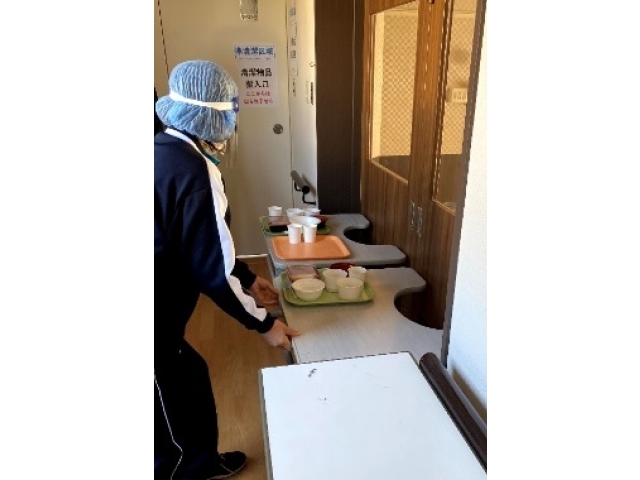 後方支援のひとつ「食事の運搬」も、クリーンゾーンから実際に提供され受け取るという体験が、今度自分が後方支援に回る時のための実感となっていく。