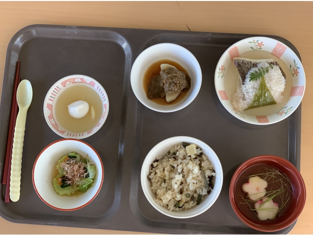 - つくしで飾り付けした、本日のメニューです。
