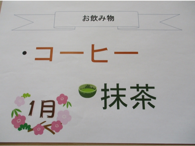 抹茶とコーヒーから好きな飲み物を選び、ゆずの里という柚子の風味豊かなお菓子を提供しました。
