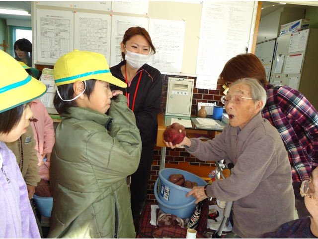 - こ~んなに大きい芋作ったのかい?!