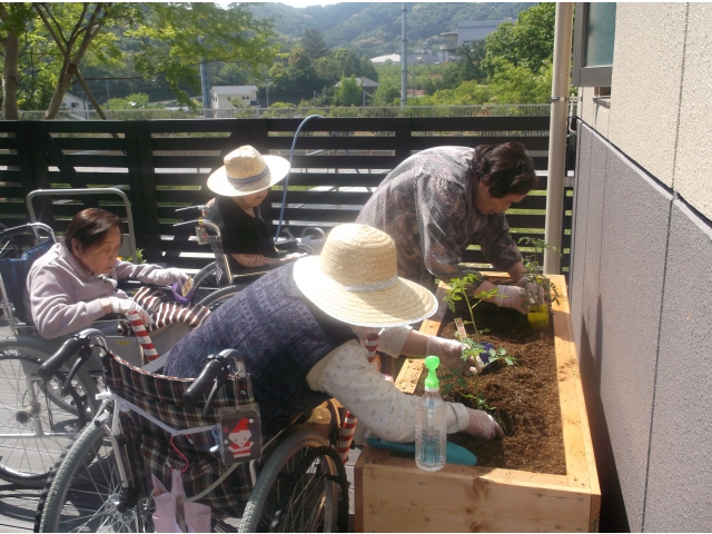 岡崎苑では、利用者さん、ご家族さんの協力を頂いて5月より園芸クラブを始めました。
