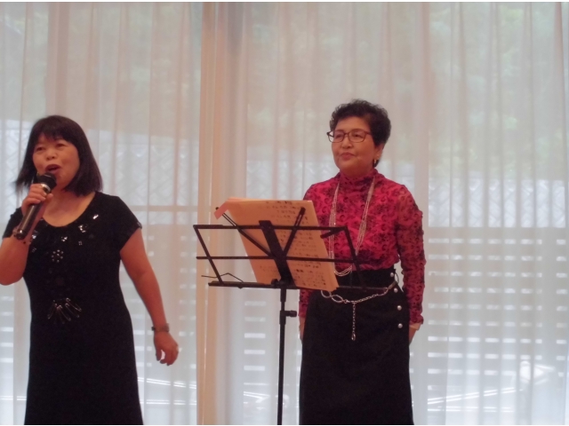 を熱唱してくれました。心地よい歌声が響くフロアで入居者の皆さんはティータイム。