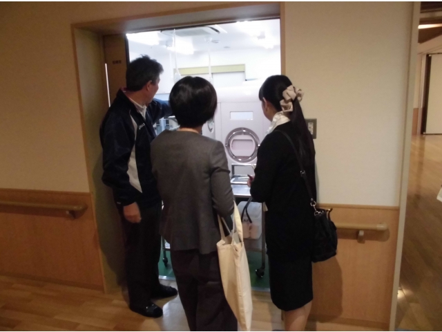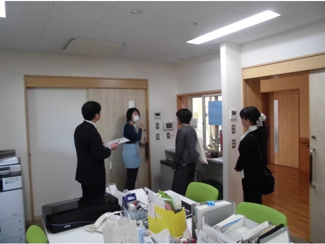 茨城県社会福祉事業団 茨城県立あすなろの郷 照沼様始め3名の方が、高年齢期に病気等で障がいを持たれた方や、先天性の障がいを持たれた方が高年齢化した時の介護への取り組み方法について、岡崎苑の状況を見学に来苑されました。