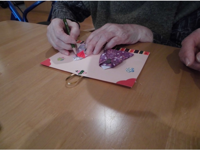 今月、折り紙クラブでは「おひなさま」を作りました。