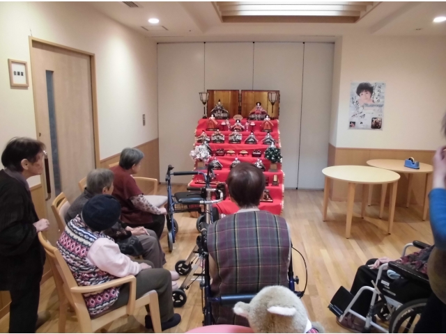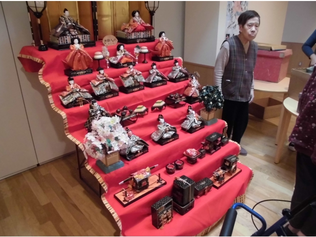ということで、入所者のみなさんに手伝ってもらいお雛様を飾ることにしました。
