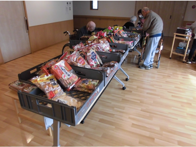 岡崎市内にある業者さんが、ほぼ毎週金曜日にお菓子販売に来苑してくれます。