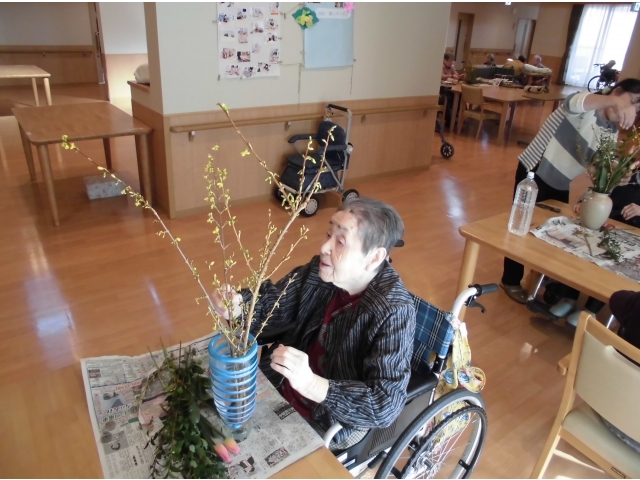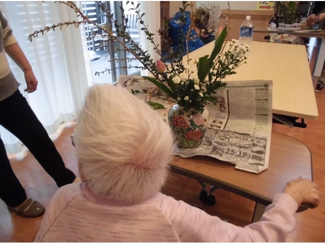 岡崎苑の人気クラブの様子をご紹介(^^♪今回も20名の入居者の方々が「生け花」を楽しまれました。