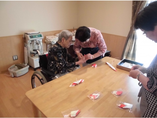 手先を動かすことが難しい方は先生が折ってくれたパーツを