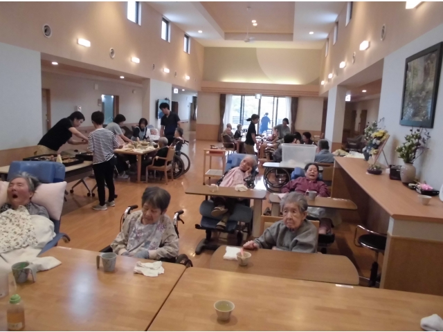 入居者様・ご家族様一緒に食事をしていただき、いつもの食堂がより賑やかに(^-^)