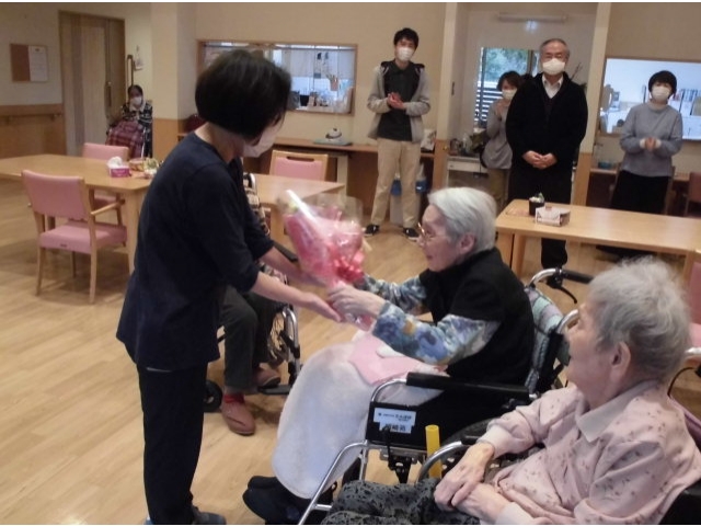 今日をもって岡崎苑を退職・転勤される職員に感謝をこめてお花を