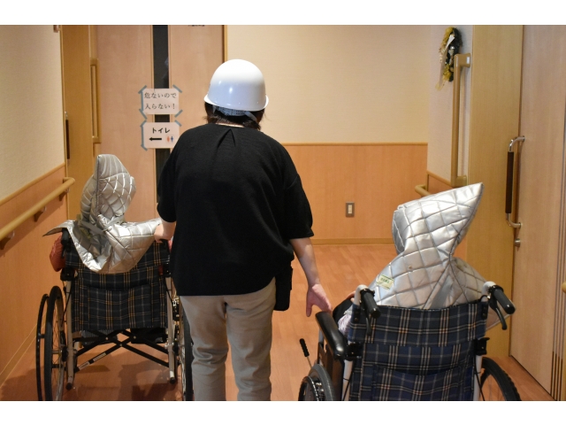 避難訓練を行って消化器や消火栓の場所、非常物品の内容やヘルメットや