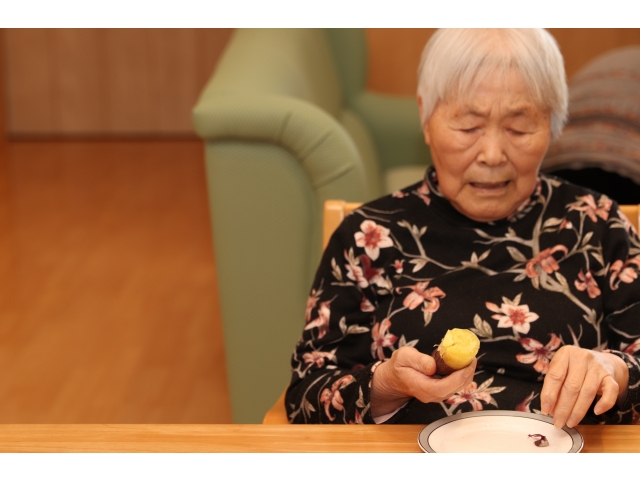 - こちらの利用者さんは自分で上手に皮をむいて・・・