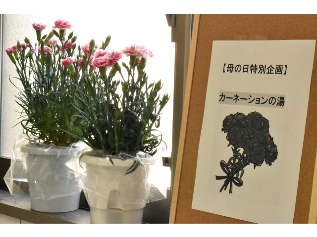 少し遅くなりましたが、5/14(火)やまぶきユニットにて入浴時に「母の日特別企画」と題して《カーネーションの湯》を計画しました。