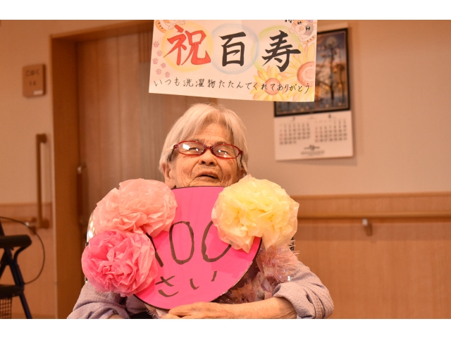 7月19日(金)13時からこはくフロアにて入居者さんの『100歳』の誕生日会を開催しました😁