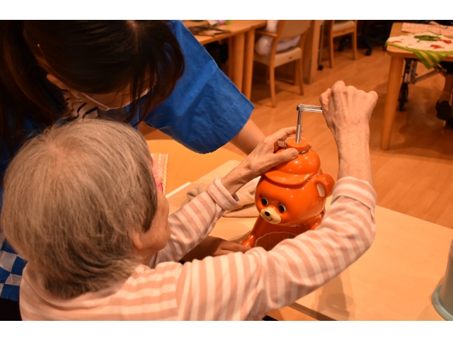 ご自身でかき氷を作れる方は、職員のお手伝いのもと一生懸命かき氷機で氷をガリガリ削り、かき氷を作りました🍧
