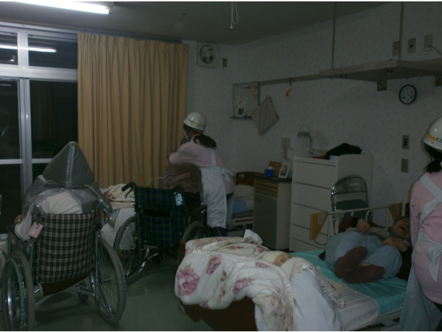 避難所への避難誘導訓練を実施する予定でしたが、2時間程前から小雨が降って来たため利用者の健康を考慮し居室南側ベランダまでの避難としました。