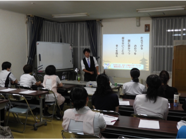 平成30年8月29日に、(株)きらめき介護塾 代表取締役 渡辺哲弘氏をお招きし、「認知症ケア」について職場研修を開催しました。