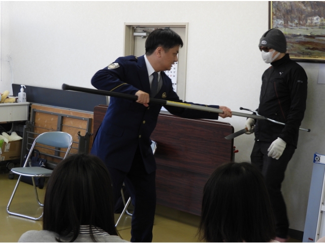 老人ホームにおいては、学校や銀行とは違い、不審者の侵入パターンが読めず難しいとのお話でしたが、とにかく声掛けをし、おかしいと思ったらすぐに110番をするのが良いとのことでした。不審者への対応といえば刺又(さすまた)が有名ですが、使い方を熟知していない人が使うのは、かえって危険なので控えた方が良いとのことでした。