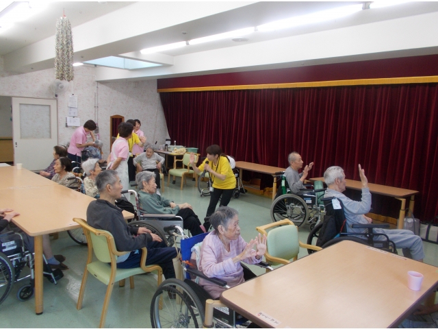 令和元年6月13日(木)に、カラオケ機のDAMを使って健康体操を行いました。みそらひばりの「川の流れのように」は、歌いながら踊りました。