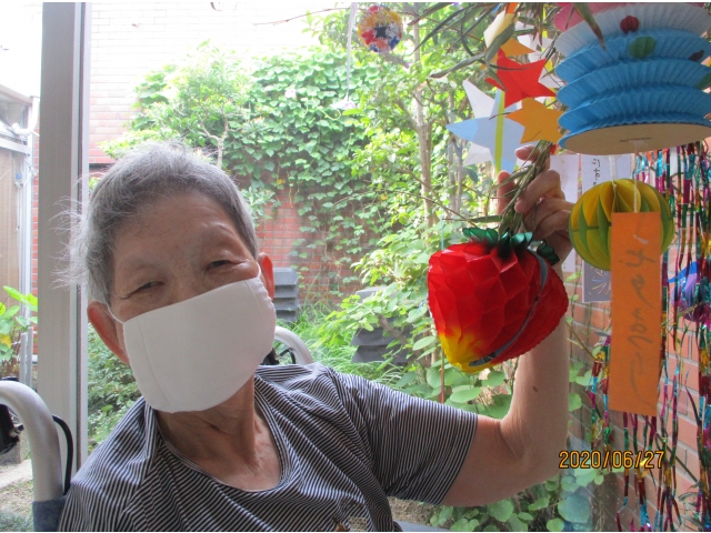 6月27日(土)佐屋苑では少し早いですが、ご利用者の皆さんと七夕の飾り付けをしました。 この飾り付けのために、以前からコツコツと折り紙で可愛い飾りを作っていただきました。