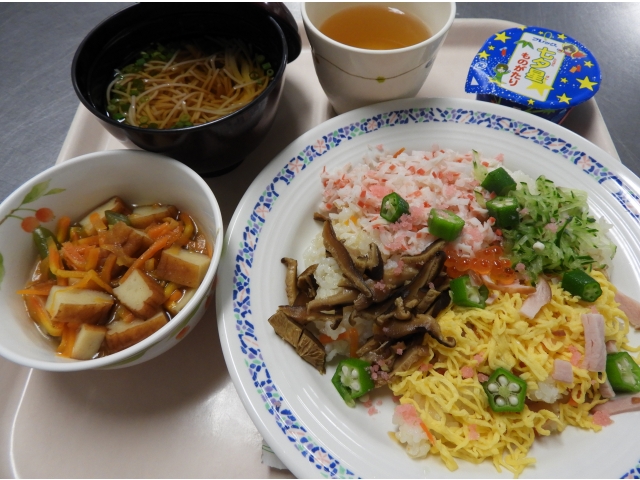 7月7日(火)佐屋苑の昼食では、七夕にちなんで、七夕ちらしを提供しました。