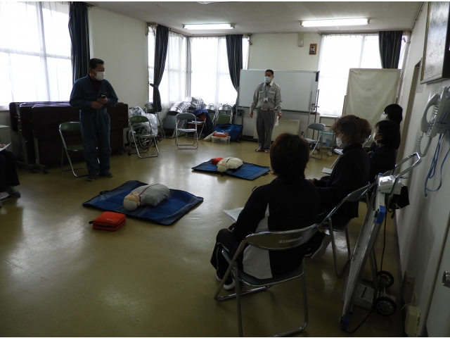 非常事態宣言の中 防災訓練(防災教育)を実施令和3年1月27日(水)に心肺蘇生およびAEDの取り扱いについて愛西消防署救急救命士伊藤氏を講師に招き行いました。 コロナ感染に気を付け密にならないよう配慮し、対処法を学びました。 最新の対処法は、マスクかタオル等で負傷者の口元を覆いかぶせる処置をし、心肺蘇生とAEDの使用をして救急隊を待つようにしてほしいとの事でした。