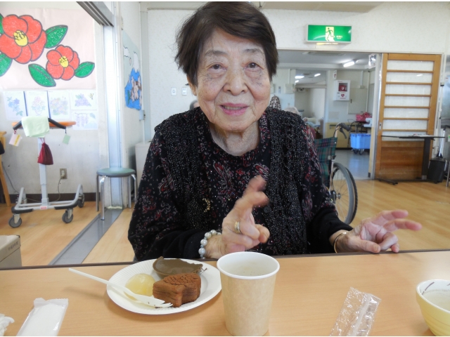 食後のお茶会では、いつもはケーキなどのスイーツですが、今回は和菓子を提供し、飲み物もグリーンティーと趣向を変えて試みました。
