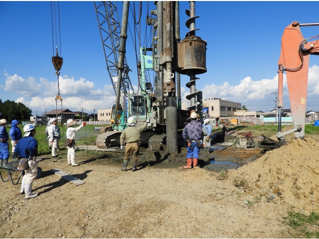 9月6日より、いよいよ「杭打ち工事」が始まりました。36メートル(12メートル×3本つなぎ)の杭を打ち込んで、しっかりした土台が完成していきます。1日に3本程度しかできず、全体で97本予定されています。来年7月の完成に向け、動き出した実感がわいてきました。また、隣接の県の防災ヘリポートも着々と進められています。