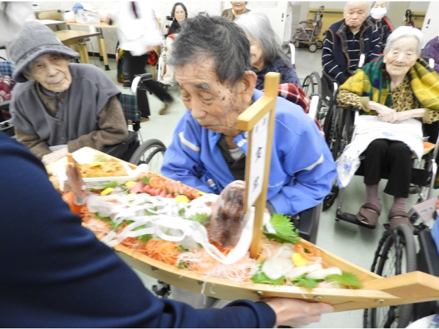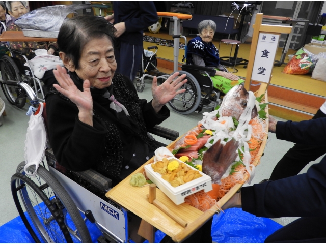 魚を捌いて30年以上のキャリアを持つ調理師が、手際よく次々とさばいて下さり、利用者の皆さんも歓声を上げながら楽しんでおられました。