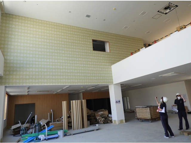 6月9日 リクルーター担当職員と現在当苑で実習中の学生さんと、工事状況を見てきました。フロアーのカラーはすべて出来上がり、多床室・個室も南フロアから→中→北へと順調に完成しつつあります。吹き抜けの交流スペースも、2階からの眺めも良く居室からの景色もなかなかのものでした。来月の完成が楽しみな、この頃です。