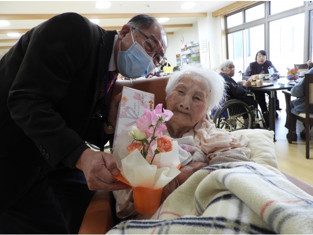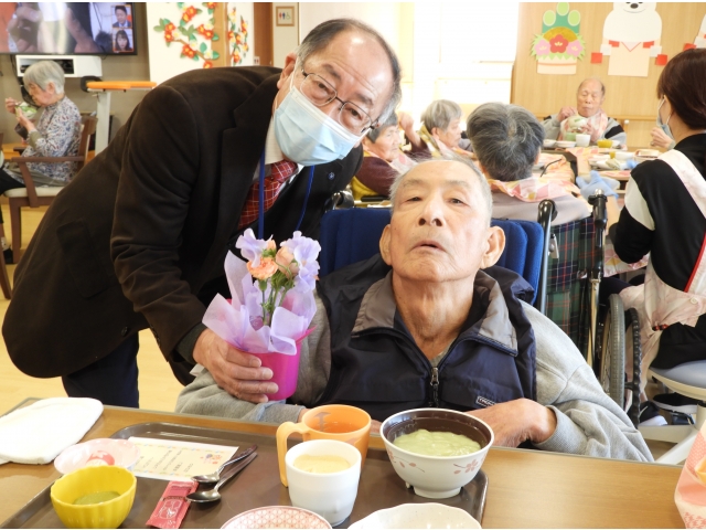 皆さんとってもいい笑顔で苑長からお花とお祝いのプレゼントを受け取っていました(*^^*)