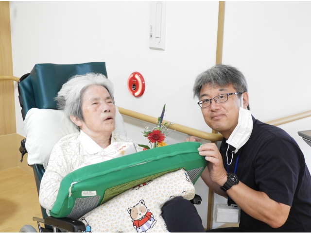 8月10日(木) 8月の誕生会をおこないました。 苑長からお花とプレゼントといただき、誕生月の方は笑顔で喜ばれていました。 職員やご利用者の皆さんに「おめでとう」と言われ、照れながらもニッコリ笑顔が見られました。