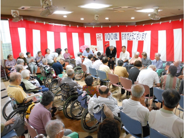 当苑に入所されている3名の方が今年、数えで100歳を迎えられ、本日、その長寿を祝して瀬戸市長始め市の福祉部長、高齢者福祉課長が敬老祝いにお越しくださいました。