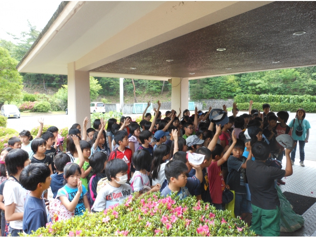 苑長が「老人ホームに来たことのある人は?」と聞くと、7~8割が手を挙げてくれました。すぐ隣にある小学校だけあって、今までにも来てくれたことのある子ども達が多いですね。