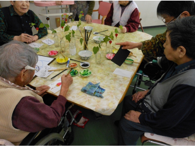 その不思議な形と鮮やかな赤色を、皆さん思い思いの筆使いで絵手紙を彩っておられました。