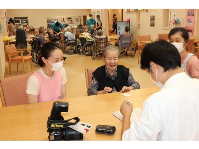 - 瀬戸市からの取材を受ける入居者様と職員の様子