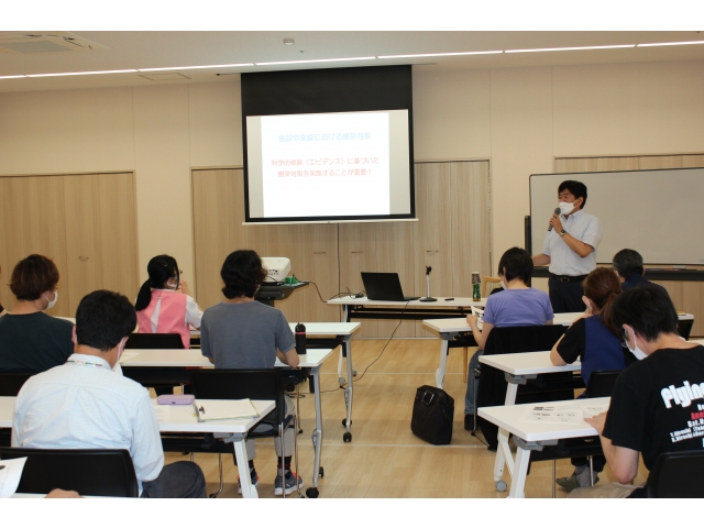 講義では、科学的根拠「エビデンス」に基づいた感染対策を実施することが重要で「手洗い後に手指消毒」「自宅での過度な消毒や除菌」等間違った感染対策を具体的に説明して頂きました。