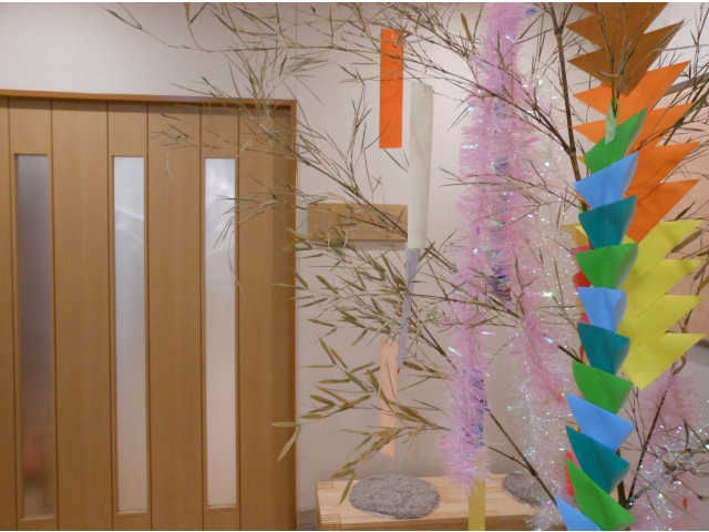 短冊には、入居者様の思いが込められています。 願い事が叶いますように