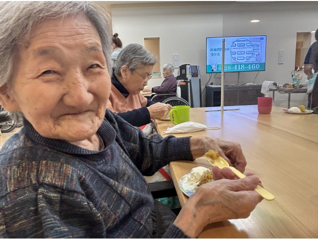 ねっとりなめらか 茨城県産「紅天使」 入居者様は、大好きなスイーツを召し上がり お腹も心も「ほくほく」気分になりました。