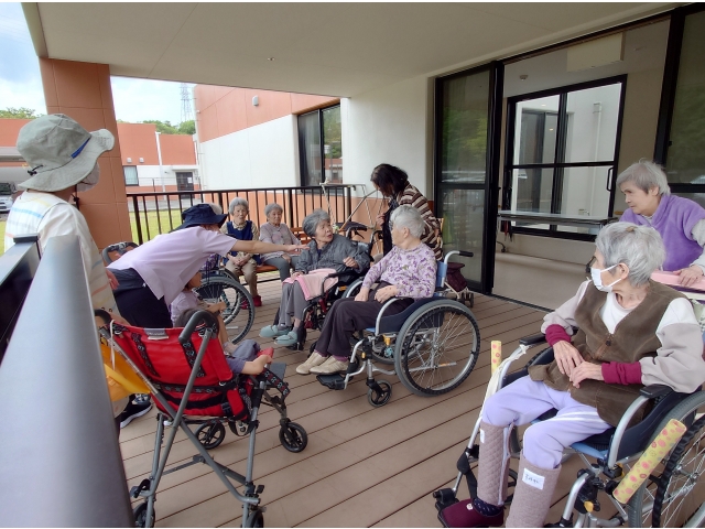 入居者の皆さんは、自分の孫や曾孫、子どもの小さい頃を思い出し、「可愛いね~」「嬉しいわ」を連発していました。