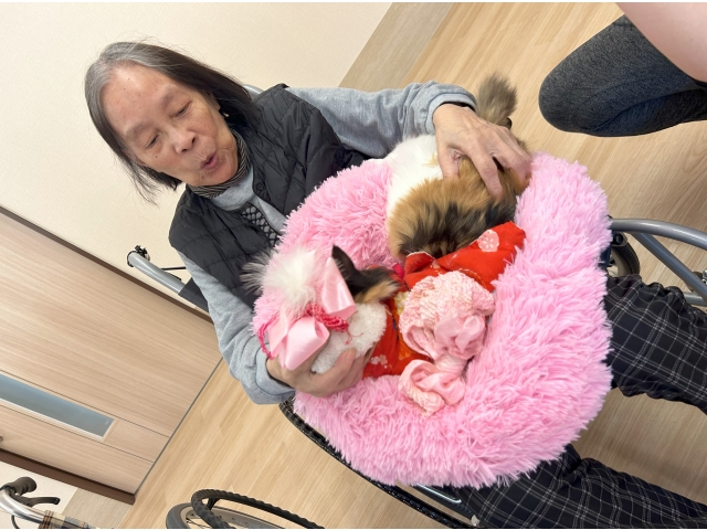 動物たちと触れ合い、思わず赤ちゃん言葉になってしまう入居者さんも…!!