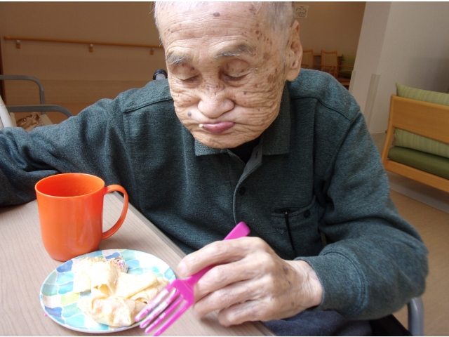 普段はうまくモグモグできない入居者様も、このクレープを口に入れた途端、