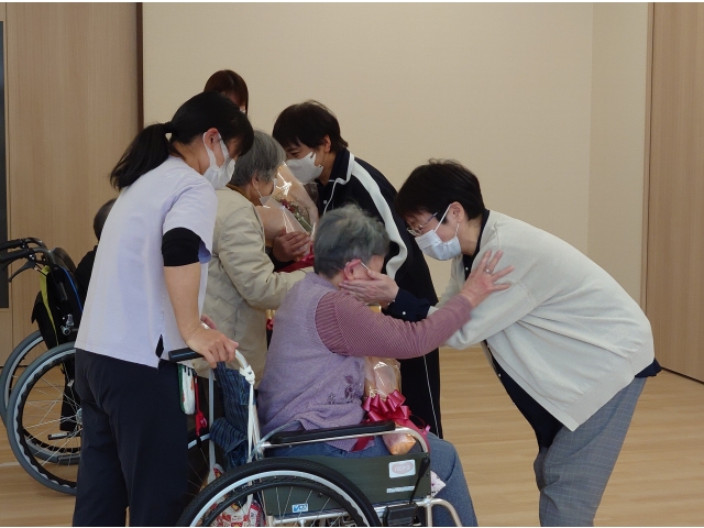 3月31日に、転退職者のお別れ会を行いました。5名の職員が定年退職や人事異動などを理由に、本日が当苑での最後の勤務となりました。 一人ひとり最後のご挨拶をして別れを惜しみました。直接担当だった入居者様から花束を贈呈し、涙の感動のお別れとなりました。 当苑を支えてくださった皆さんの門出に、大きな拍手で送り出しました。新しい職場へ行っても、お身体に気を付けて元気でお過ごしくださいね😉