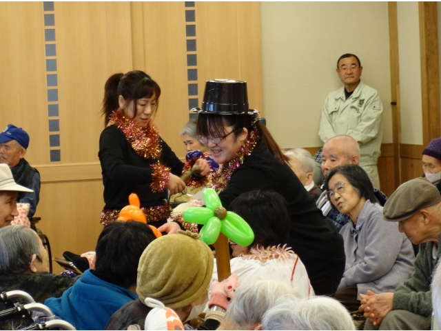 また曲の間には「風船アート」と題し、長細い風船で動物などを作り、出来上がったものは利用者にプレゼントしました。