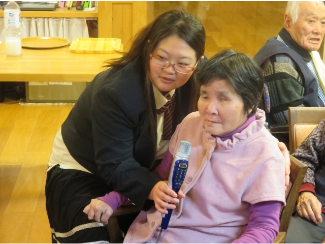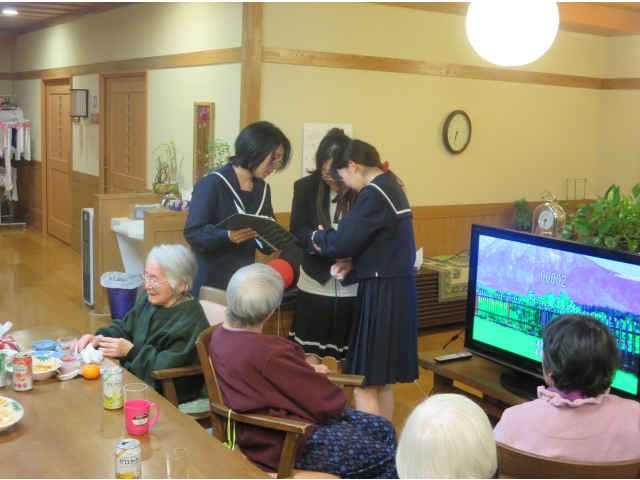 少し遅くなってしまいましたが、夕食を兼ねてささやかな新年会を行いました。食後にはカラオケを行い、職員も制服を持ち寄り、「高校三年生」を入居者様の前で披露するなど、笑顔が絶えない時間を過ごしました。