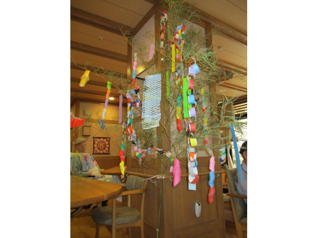 7月2日にすずかぜの家では、七夕会を催しました。短冊に願を書いてもらい、笹に飾りつけをしました。短冊にはみなさんの個々の願いや国政への願いなど様々な願いが綴られました。