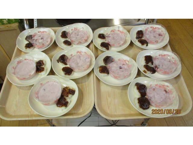 最近はコロナウイルスの影響で面会が思うようにできず、気分が落ち込みがちになってしまっているので、奥三河の名物「五平餅」やデザートとして「フルーチェ(イチゴ味)」を用意し、食事を楽しみながら介護員による絵本寄席「まんじゅうこわい」や、昭和の懐かしい歌謡曲を鑑賞したり、全員で「ふるさと」を歌うことで入居者様達の親睦を親睦を深め気分転換をする事ができました。